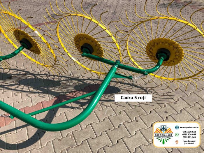 AgroDiamant comercializează greble cu roți tip soare ⌀1.2m cu 4 / 5 roți. Reușim să oferim asistență tehnică precum și piese de schimb pentru utilaje.